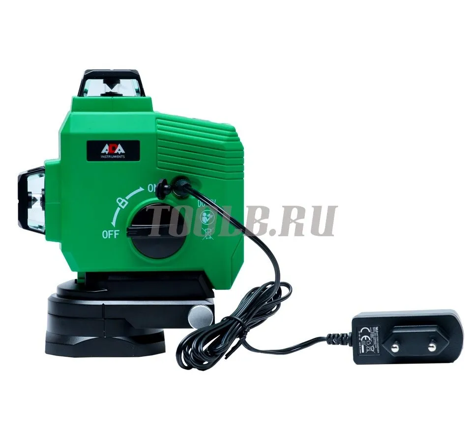 Литиевый аккумулятор. Уровень работает от литий-ионного аккумулятора повышенной емкости — 3600 mA. Если аккумулятор полностью разрядился, уровень ADA TOPLINER 3-360 GREEN может работать от зарядного устройства включенного в бытовую сеть. При этом аккумулятор будет заряжаться.