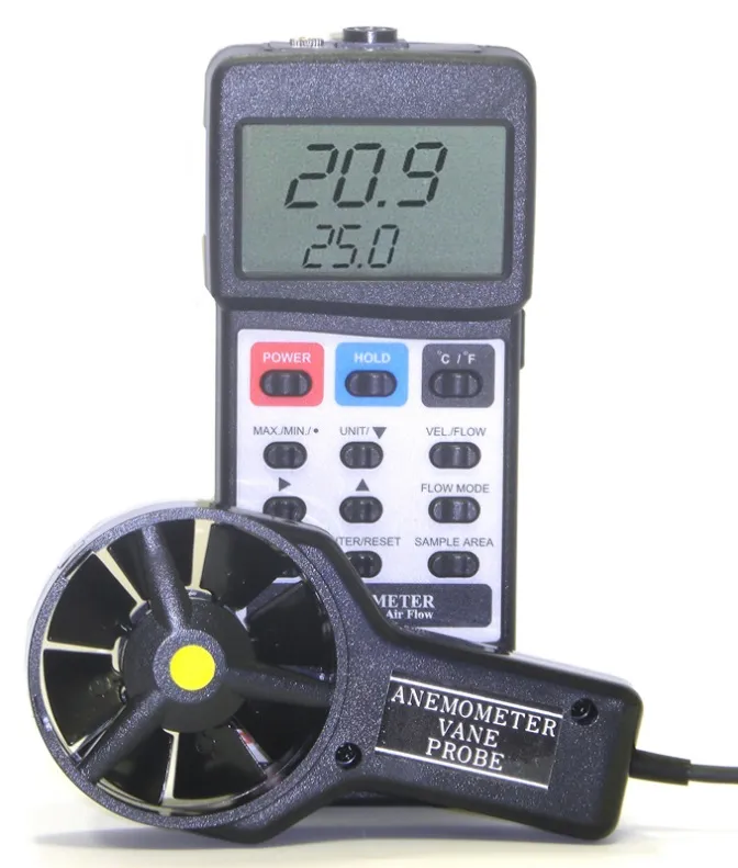 Портативный крыльчатый анемометр, позволяет быстро и точно измерить скорость движения воздушного потока и передать результаты измерения в компьютер. Помимо измерения скорости прибор вычисляет объем проходящего через крыльчатку воздуха. Последнее, максимальное и минимальное измеренные значения могут сохраняться в памяти автоматически.