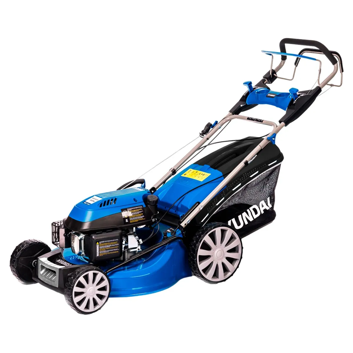 Cамоходная газонокосилка оборудована приводом на задние колеса. Газонокосилка едет сама. Ее достаточно направлять. Эргономичные рукоятки управления имеют обтяжку из мягкой резины, снижает утомляемость и повышает удобство работы. Оригинальный бензиновый двигатель HYUNDAI 5,6 л.с., гарантирует качество работы и долговечность. Благодаря ему газонокосилка способна обработать большие площадки газона без особого труда. Колеса, посаженные на подшипники, имеют разную величину. Увеличенный диаметр задних колес повышает проходимость бензогазонокосилок HYUNDAI и сохраняет их высокую маневренность.