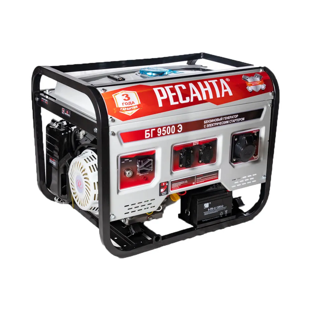 Электрогенератор Ресанта БГ 9500 Э предназначен для автономного электроснабжения. В качестве первичного двигателя используется четырехтактный карбюраторный двигатель, топливом для которого является неэтилированный бензин.