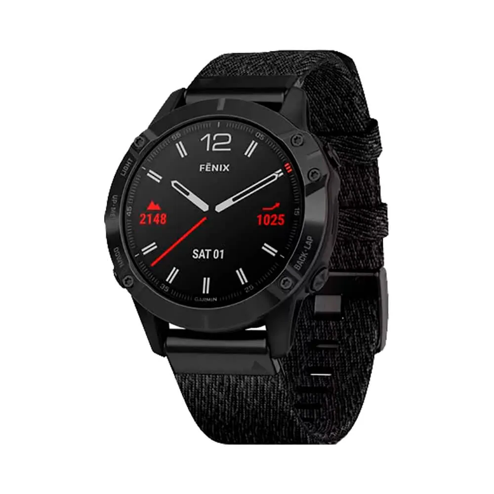 Часы Garmin Fenix 6 Sapphire черный DLC с плетеным черным нейлоновым ремешком