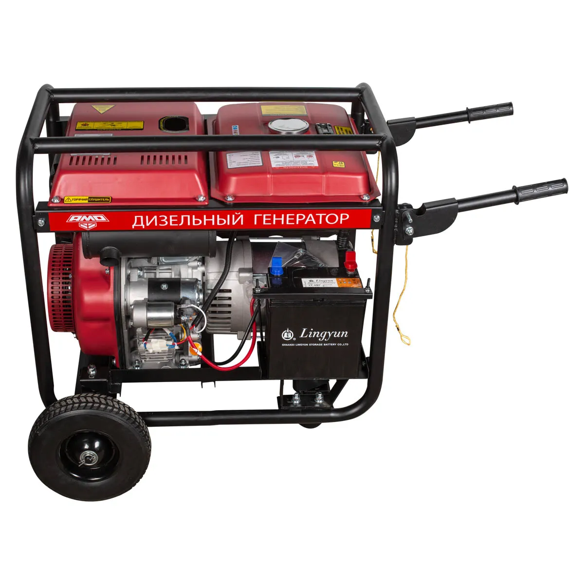 Дизель-генератор AMO ADG 6000EF3 оснащен электростартером, что позволяет быстро и удобно запускать ее поворотом ключа. Такое решение особенно актуально на выезде и для решения задач, требующих частых перестановок. Электростартер питается от аккумулятора, который подзаряжается в процессе работы. Возможность ручного запуска сохранена, она может пригодиться в непредвиденных ситуациях.