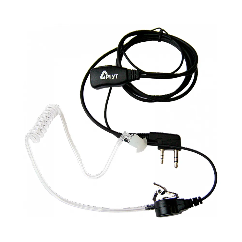 Гарнитура НМ-21 для портативных радиостанций АРГУТ и других моделей с аналогичным типом разъема гарнитуры. Оснащена выносной кнопкой РТТ, совмещенной с микрофоном, которая крепится к одежде с помощью прищепки. Имеется наушник скрытого ношения - прозрачная акустическая трубка. В гарнитуре использована кевларовая нить.