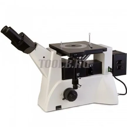 Микроскоп применяется для контроля качества металлов и сплавов и исследования их структуры. Инвертированное строение позволяет исследовать габаритные объекты. Фокусировка осуществляется за счет перемещения по вертикали револьверного устройства, а не предметного столика. Предметный столик двукоординатный – перемещение объекта осуществляется не при помощи накладного препаратоводителя (как в модели Микромед МЕТ-1), а за счет перемещения всего столика в двух взаимно перпендикулярных плоскостях, что обеспечивает точность перемещения. Столик предусматривает перемещение объекта до 2 кг.