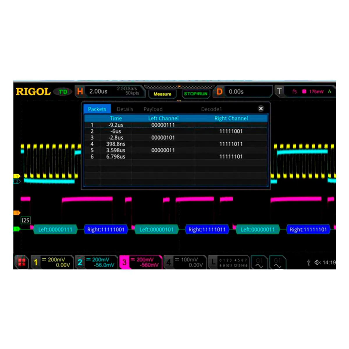 Опция MSO8000-AUDIO добавляет в осциллографы Rigol серии MSO8000 возможность декодирования и запуска по сигналам шины I²S.