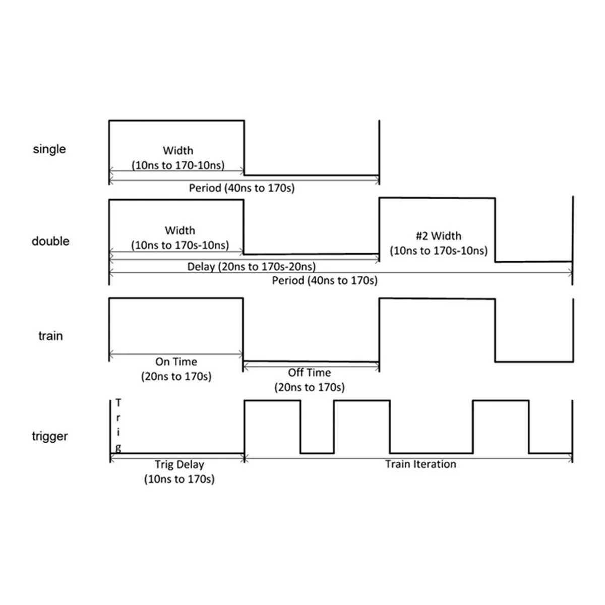 Опция PUG-DSG3000 позволяет добавить в генераторы сигналов Rigol DSG3060 и DSG3030 функции генератора импульсов и последовательностей импульсов (паттернов). Количество импульсов в последовательности 1...2047.