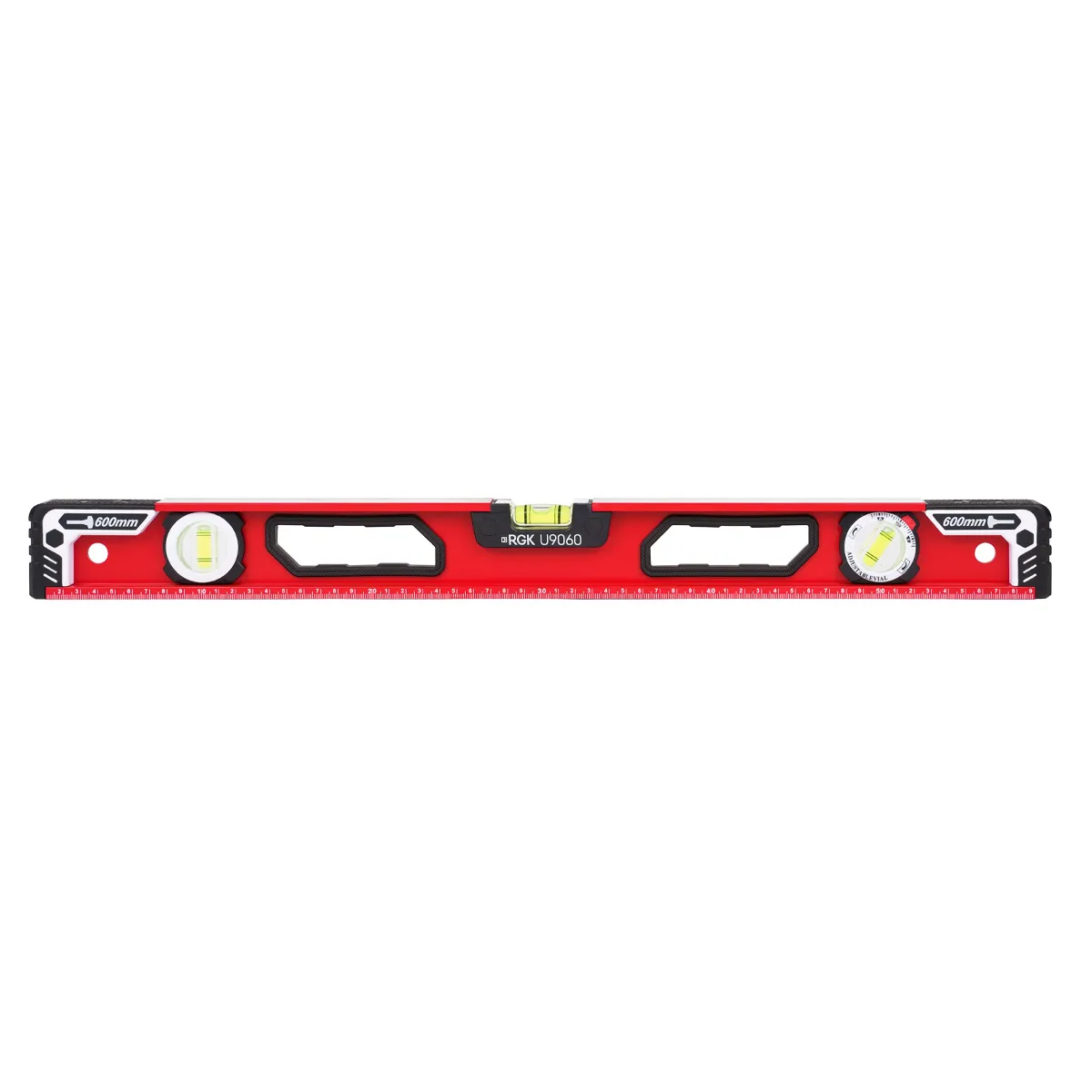 Пузырьковый строительный уровень RGK U9060 обеспечивает точность 1 мм/м. Длина 60 см позволяет использовать инструмент для проведения масштабных строительных работ по выравниванию полов, штукатурке стен и др.