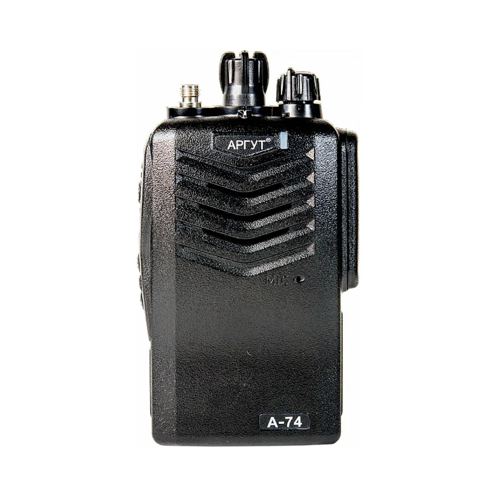 Рация Аргут А-74 поддерживает связь с ретрансляторами в разных частотных диапазонах, имеет режим автоматического сканирования частот. Компания Аргут производит портативные рации Аргут А-74 в четырех модификациях: Аргут А-74 DMR UHF, Аргут А-74 DMR UHF, Аргут А-74 dPMR VHF и Аргут А-74 dPMR UHF. Отличные звуковые характеристики, защита от несанкционированного вмешательства в радиообмен и высокая помехозащищенность ставят радиостанцию Аргут А-74 в один ряд с известными зарубежными брендами.