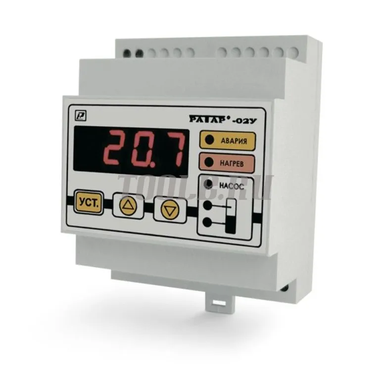 Терморегулятор Ратар-02У предназначен для автоматического поддержания температуры и заданного уровня в водонагревателях, отопительных котлах, системах горячего водоснабжения и отопления путём управления нагревателем и насосом.