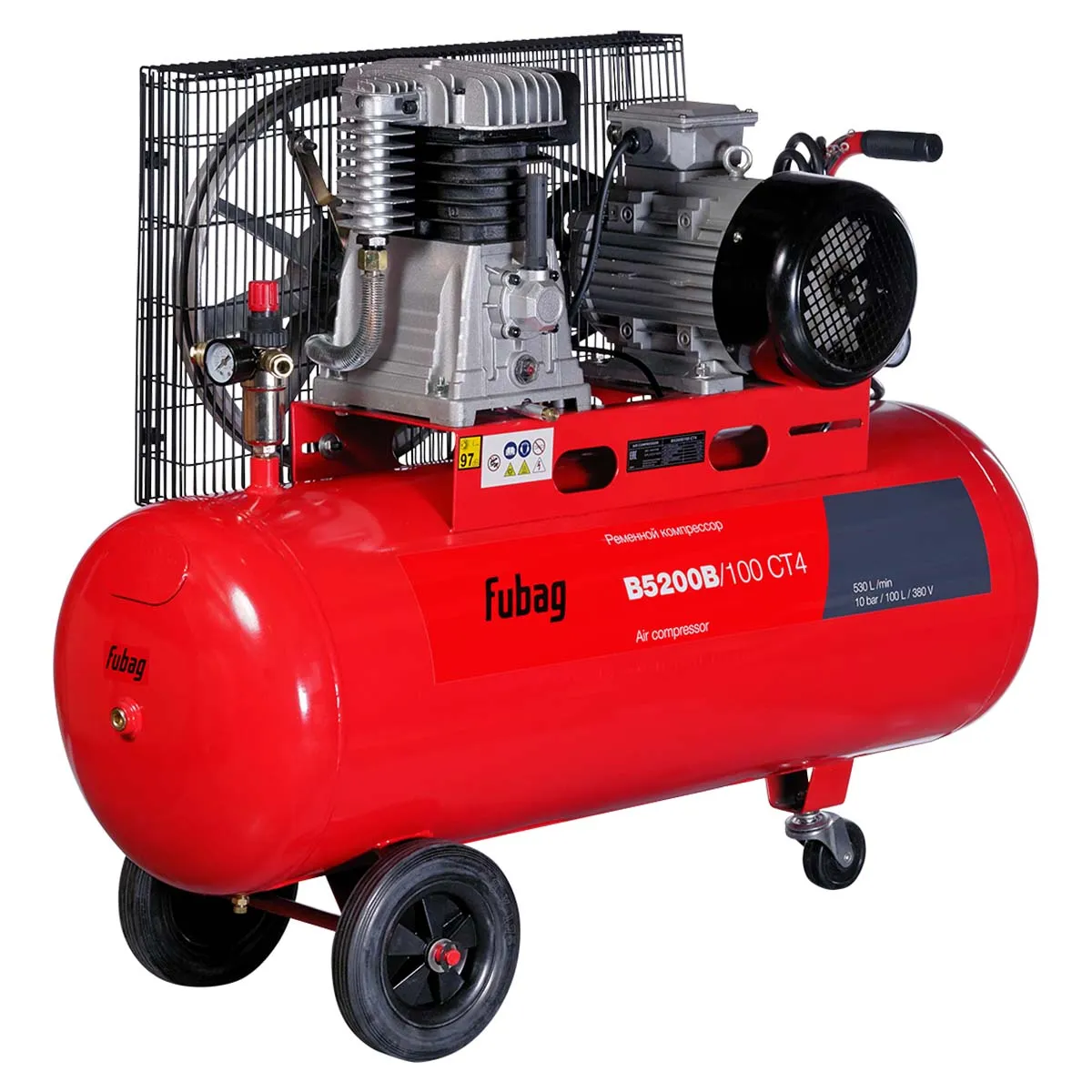 Ременной компрессор FUBAG B5200B/100 CT4 - экономичное решение по обеспечению сжатым воздухом крупного гаражного хозяйства, автопарка, стройплощадки или небольшого производства.