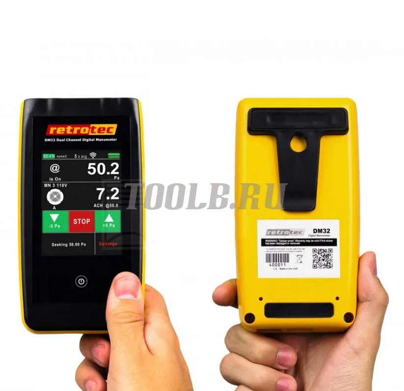 С помощью программного обеспечения вы сможете проводить измерения в полностью автоматическом и в ручном режимах на ваш выбор. ПО управляет вентилятором, собирает данные во время работы аэродвери и генерирует отчёт. Манометры подключаются при помощи кабелей USB, Ethernet, у DM32 есть WiFi. Несколько манометром могут быть соединены различными способами. Подробные отчёты можно создавать по индивидуальным шаблонам, брендировать.
