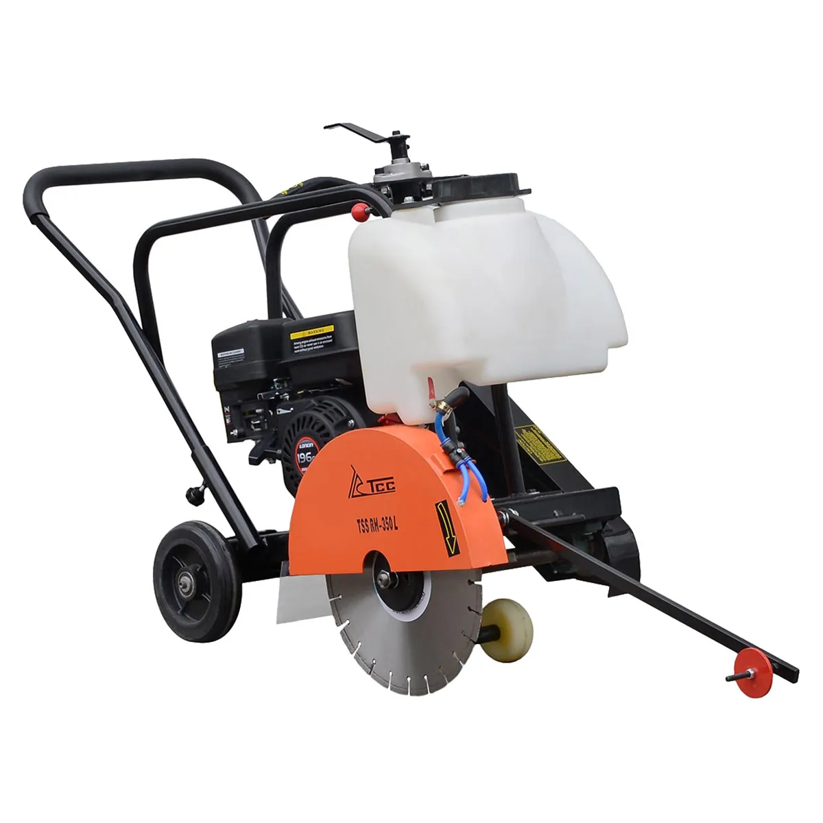 резчик швов PATRIOT RCS 450 —это усовершенствованная модель с утолщенной рамой, максимальная глубина реза которой достигает 200 мм. Могут устанавливаться диски диаметром от 350 до 500 мм. Имеет высокую мобильность, даже при работе в местах с затруднённым доступом, а также удобен в управлении. резчик швов неприхотлив в обслуживании, что упрощает эксплуатацию, долговечен. Оснащён бензиновым двигателем мощностью 15 л.с. Удобное расположение бака для воды, эргономичная прорезиненная рукоять для комфортной работы. Крупные колёса обеспечивают высокую проходимость. Алмазный диск обеспечивает высокую производительность работы (гладкий и красивый разрез). резчик швов поставляется с баком для воды (для распыления на режущее лезвие), чтобы продлить срок службы диска.