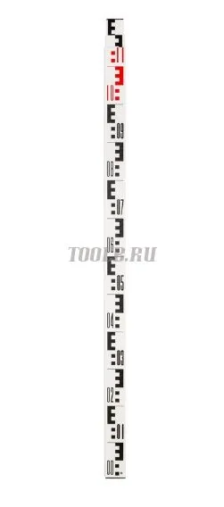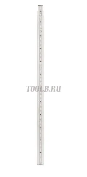 Длина нивелирной рейки в сложенном состоянии составляет 1.1 м, благодаря чему инструмент легко транспортировать в машине и переносить к месту проведения исследований в удобном комплектном чехле с плечевым ремнем. Телескопическая конструкция раздвигается до 3 м; такой длины достаточно для решения большинства измерительных задач. Материал корпуса - прочный и легкий композитный стеклопластик, который устойчив к коррозии, окислению и различным атмосферным воздействиям.