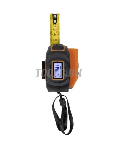 На дисплее, находящемся на верхней грани прибора, отображается измеренное лазерным дальномером расстояние. Также, на дисплее отображается уровень заряда батарей, включение лазера и точка начала отсчета. Встроенная подсветка позволит считывать показания при солнечном освещении и в сумерках.