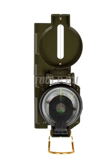 Специальная металлическая скоба позволяет не только комфортно держать и переносить компас, но и устанавливать его на горизонтальной поверхности.