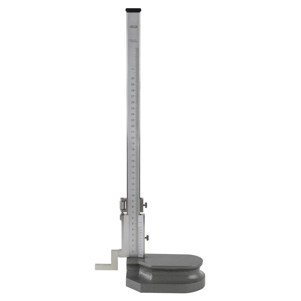 Штангенрейсмас RGK SCG-300 представляет собой механический измерительный инструмент с рабочим диапазоном до 300 мм, снабженный нониусом, обеспечивающим считывание показаний с разрешением 0,02 мм. С помощью данного прибора можно выполнять разметку и вертикальные измерения относительно опорного основания или выбранной горизонтальной плоскости на различных изделиях и деталях, в том числе крупноразмерных.