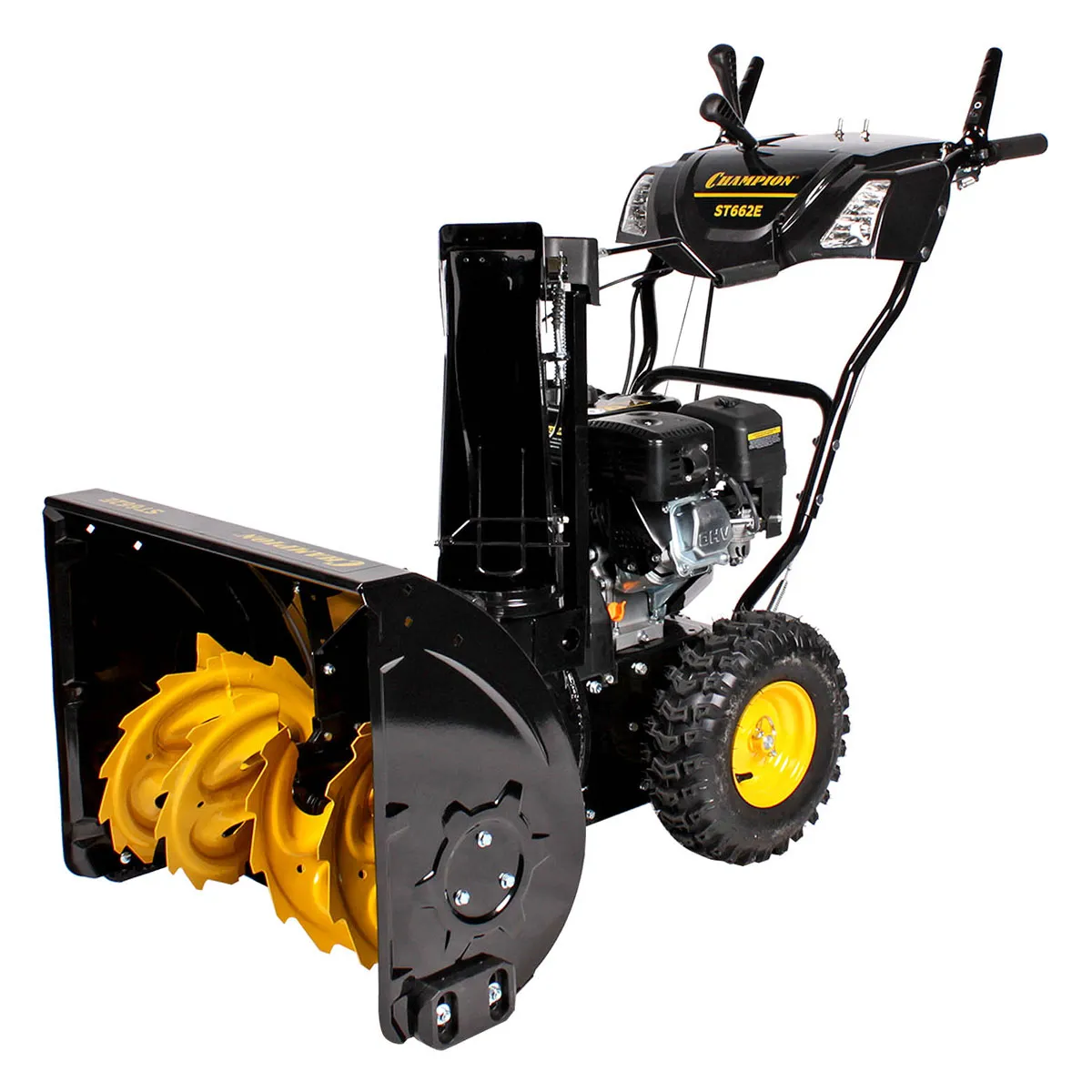 Самоходная снегоуборочная машина Champion ST662E предназначена для очистки поверхностей от свежевыпавшего, рыхлого и утоптанного снега. Двухступенчатая система стальных шнеков также справляется с обледеневшим снежным покровом. Устройство применяется к в быту (на дачных участках, в частных домах и усадьбах), так и на крупных общественных и административных объектах. Бензиновый снегоуборщик Champion ST662E комплектуется высокопроизводительным двигателем с верхним расположением клапанов, который легко запускается даже при отрицательной температуре. Для комфортного использования установки даже в неблагоприятных погодных условиях конструкцией предусмотрены обогрев рукояток и передние фары.