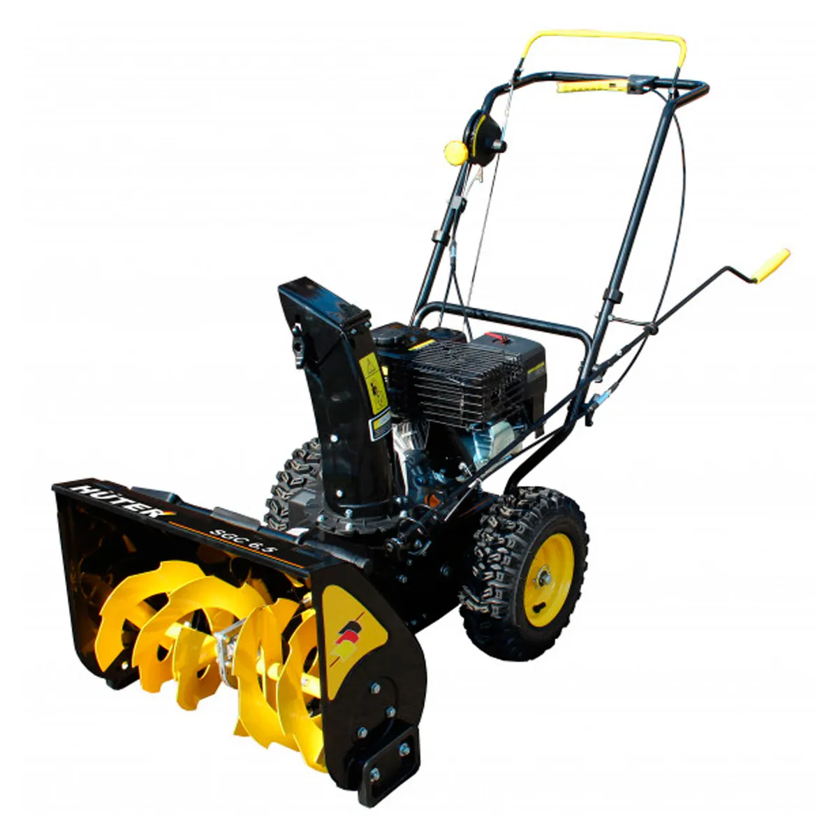 Снегоуборщик Huter SGC 6,5 имеет 4 скорости работы вперёд и 2 назад, за один проход способен очистить 56 см осадков высотой 42 см. Хорошо измельчает плотный снег и не скользит при гололеде благодаря протекторам на шинах. Специальный рычаг позволяет регулировать направление выброса снега прямо в процессе работы. Четырехтактный бензиновый двигатель имеет систему воздушного охлаждения, исключающую перегрев. Снегоуборщик Huter SGC 6,5 является самым недорогим и компактным и легким в линейке Hunter SGC.