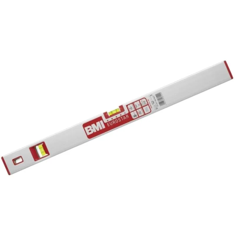 Уровень алюминиевый BMI Eurostar 690EM 80 см. Хорошая обзорность ампулы благодаря эффекту увеличения. Жесткий, гладкий алюминиевый профиль. Горизонтальная ампула с дополнительными насечками. Корпус с серебристым анодированным покрытием.