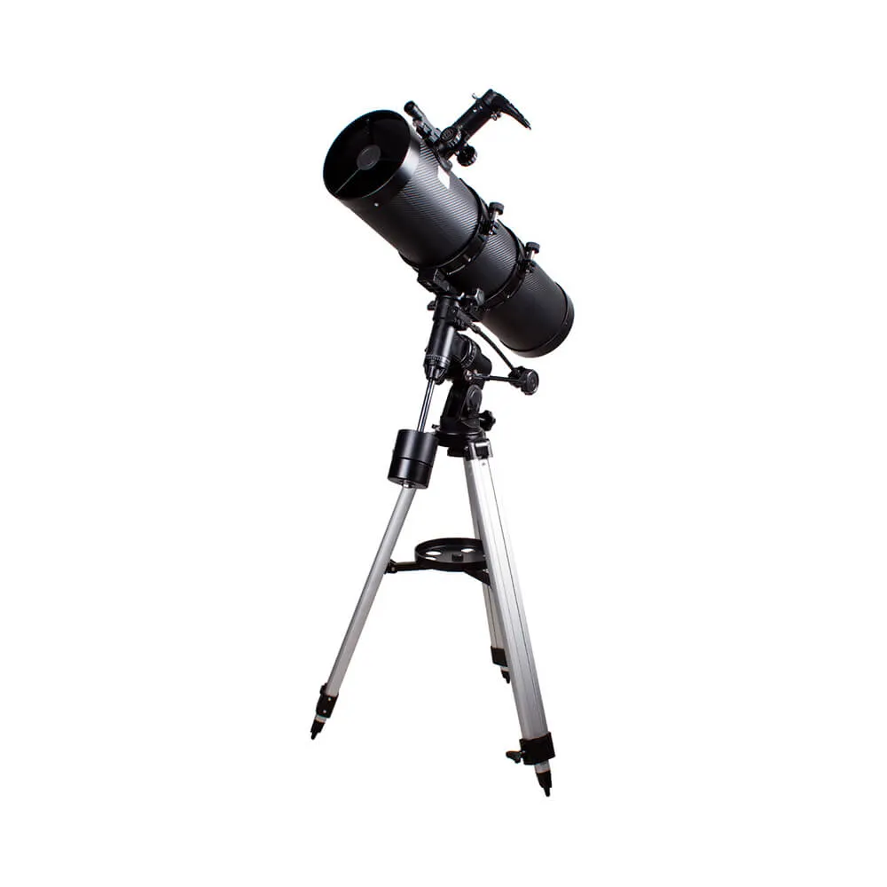 Телескоп Bresser Pollux 150/1400 EQ3 – это рефлектор Ньютона, оснащенный встроенной линзой Барлоу. Поэтому при его большом фокусном расстоянии (1400 мм) длина трубы остается достаточно короткой и удобной для транспортировки. Экваториальная монтировка EQ3 позволяет быстро навести телескоп на интересующий небесный объект и сопровождать его суточное движение вращением ручки тонких движений. Для удобства поиска объектов есть искатель с красной точкой.