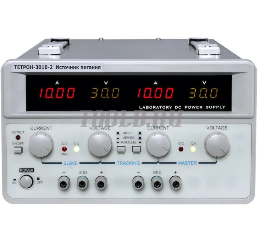 ТЕТРОН-3010-2 является линейным двухканальным источником питания с выходным напряжением 30 вольт и током 10 ампер.