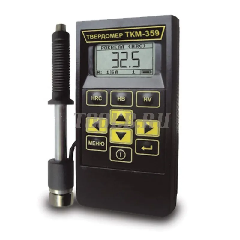 Твердомер ТКМ-359М реализует измерения в основных, стандартизованных в России шкалах твердости - HB, HRC, HV, а также шкалах HRA, HRB, HSD и предел прочности на разрыв (пересчет по ГОСТ 22761-77 для сталей перлитного класса).