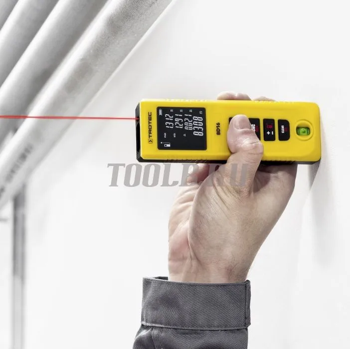 Высокая точность измерения с погрешностью всего 3 миллиметра и максимальная дальность действия около 40 метров делают BD16 идеальным инструментом для каждого мастера. Функции отслеживания MIN и MAX, а также «Пифагор» и «Пифагор, умноженный на два»