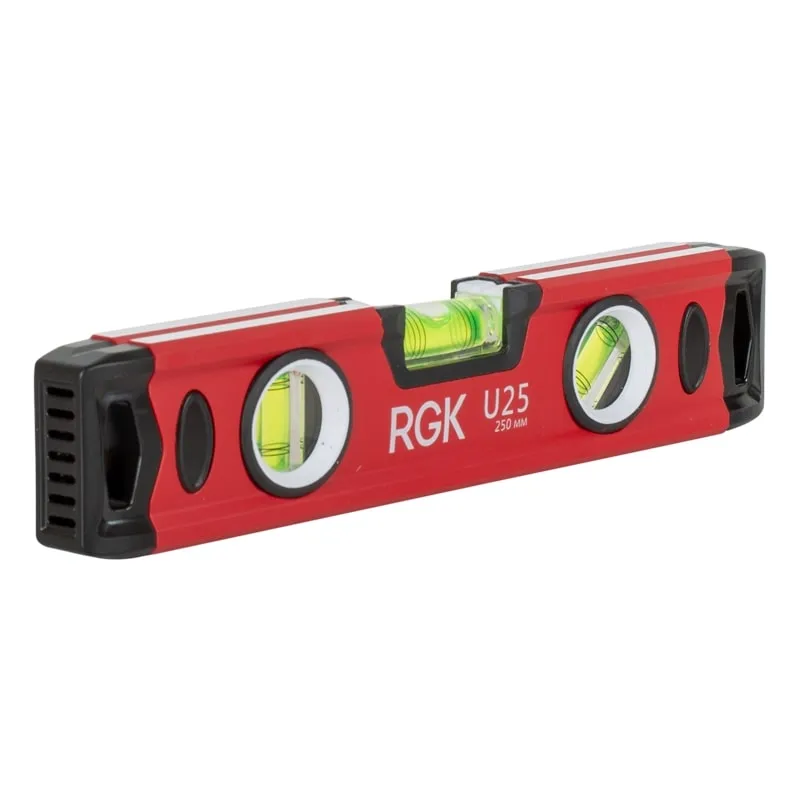 Уровень RGK U25 станет отличным помощником на любой стройке или ремонте. Он покажет, насколько ровно установлена конструкция или отделана поверхность. Для производства работ и оценки результатов с помощью инструмента не нужны специальные знания и навыки, поэтому такие приборы успешно используются профессионалами и домашними мастерами.